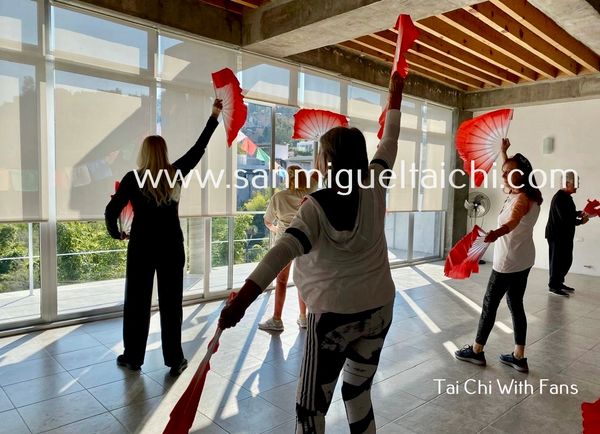 Tai Chi is a gentle form of exercise suitable for all ages and fitness levels. Join me at SAN MIGUEL TAI CHI to experience the benefits of this ancient practice, which promotes relaxation, flexibility, and mental clarity. Our red fans in Tai Chi classes help improve balance, coordination, and flexibility, while bringing calm and confidence to every movement.